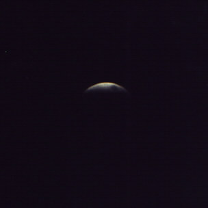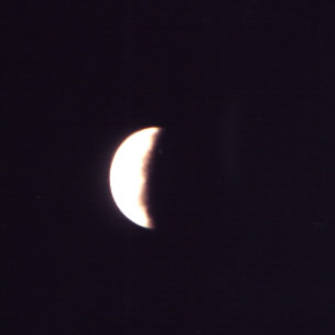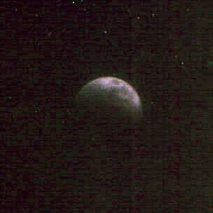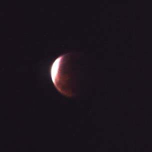 so dass der kaum sichtbare Mond eher braun als rot schimmerte.